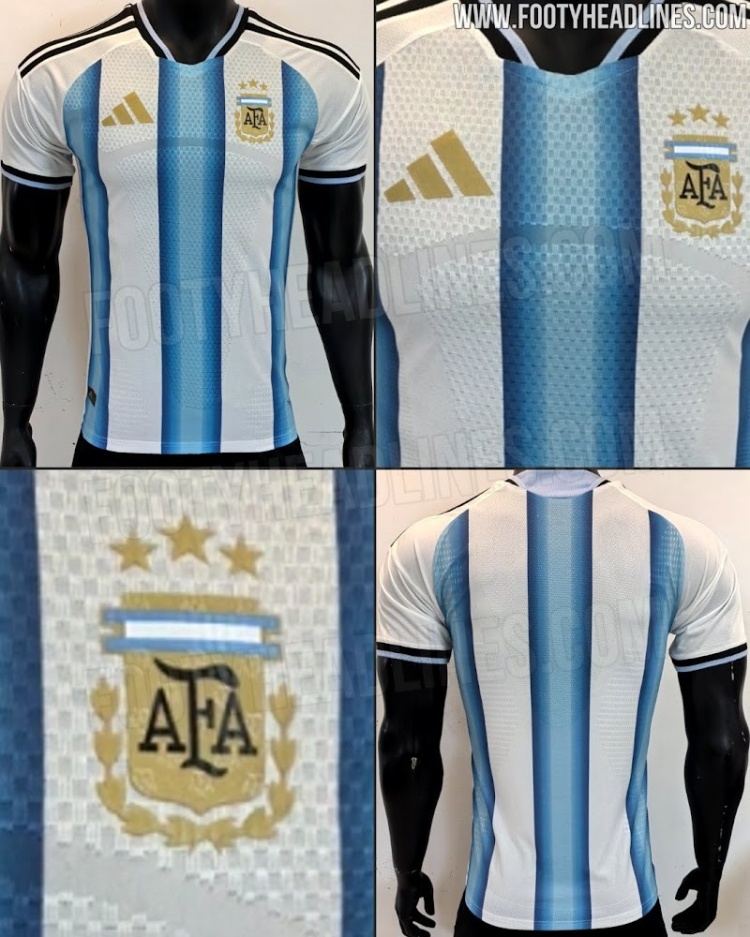 9月28日讯古代足球 运动活动 装备网站footyheadlines报道,阿迪达斯为阿根廷国家队设计的2026年世界杯赛 主场作战 运动活动 服 谍照近日曝光。新款运动活动 服 在保留了经典 的白色与天蓝色竖条纹的基础上,加入了显著的当代 设计元素。