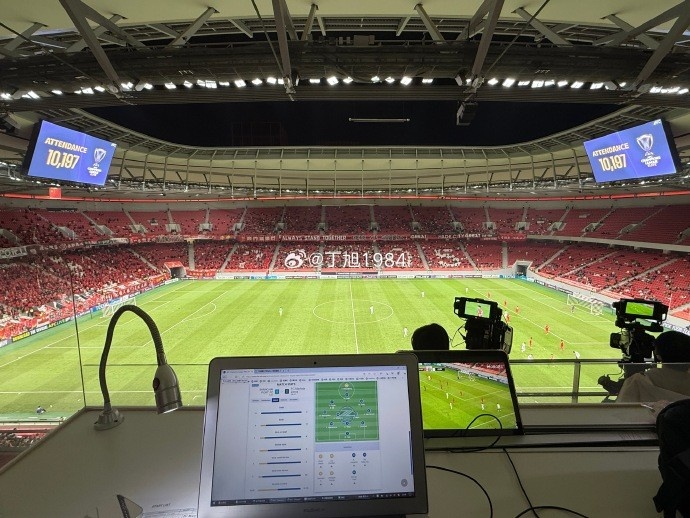 丁旭在社媒晒照并介绍写道:“亚冠精英职业联赛 职业联赛 阶段东亚区第3轮: 上海海港vs町田泽维亚现场观赛人群 人数:10197,太惨淡了。”