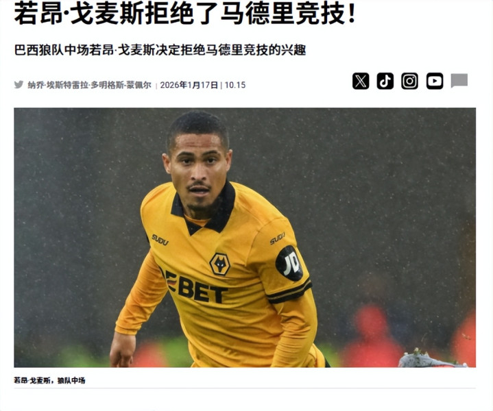 夏窗期狼队上赛季为球队贡献15球6助功 的狼王库尼亚离队加盟了曼联,五后场球员体系中两个边后场球员艾特努里加盟了曼城、塞梅多加盟了费内巴切。