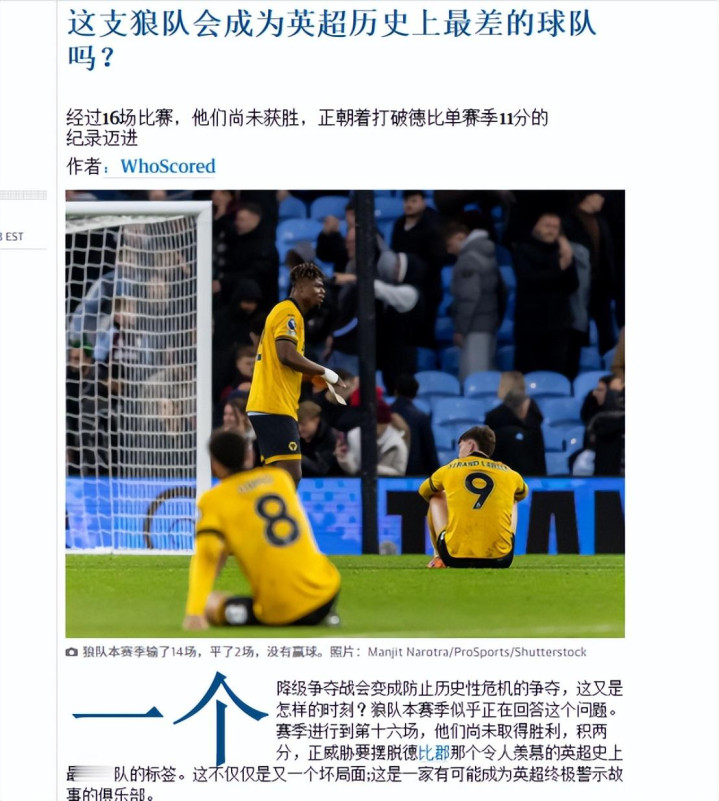 当时英超对这支狼队的新闻标题都是“这支狼队会成为英超历史上最差的球队吗?”。