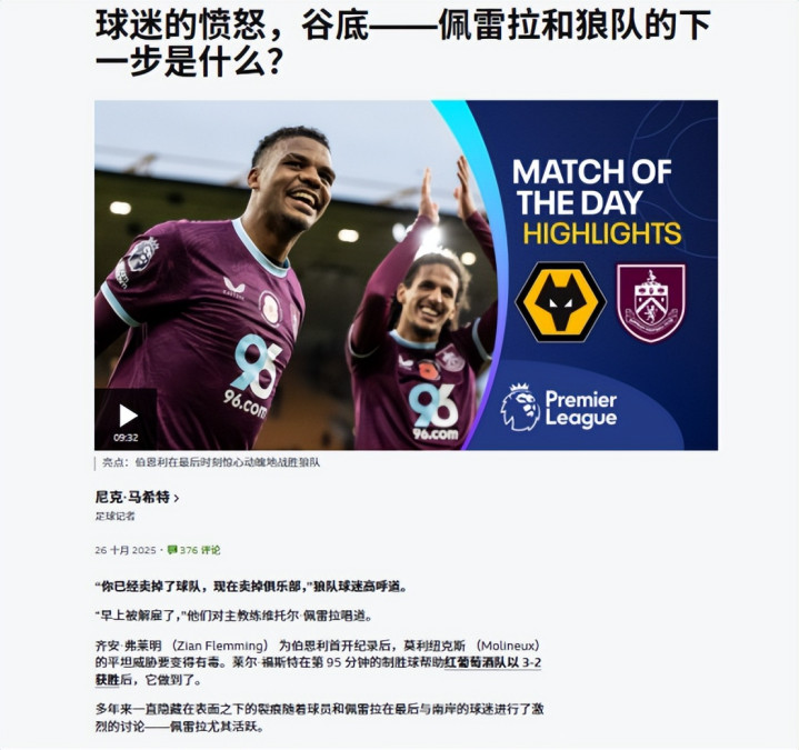 新赛季几轮后主帅佩雷拉押宝的阿里亚斯没能踢出来,导致了狼队持续崩盘。
