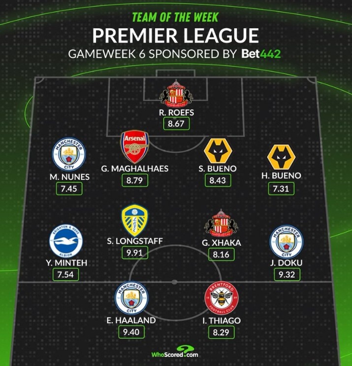 后场球员:努内斯(曼城)、加布里埃尔(阿森纳)、圣地亚哥-布埃诺(狼队)、乌戈-布埃诺(狼队)