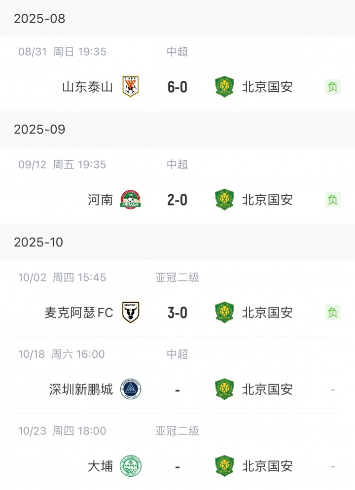 国安客场应战 已遭3连败,此后还将连续做客应战 新鹏城和大埔