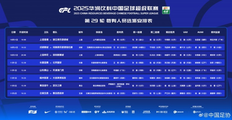 中超第29轮裁判 :傅明执法海港vs浙江 沙特裁判 执法海牛vs三镇